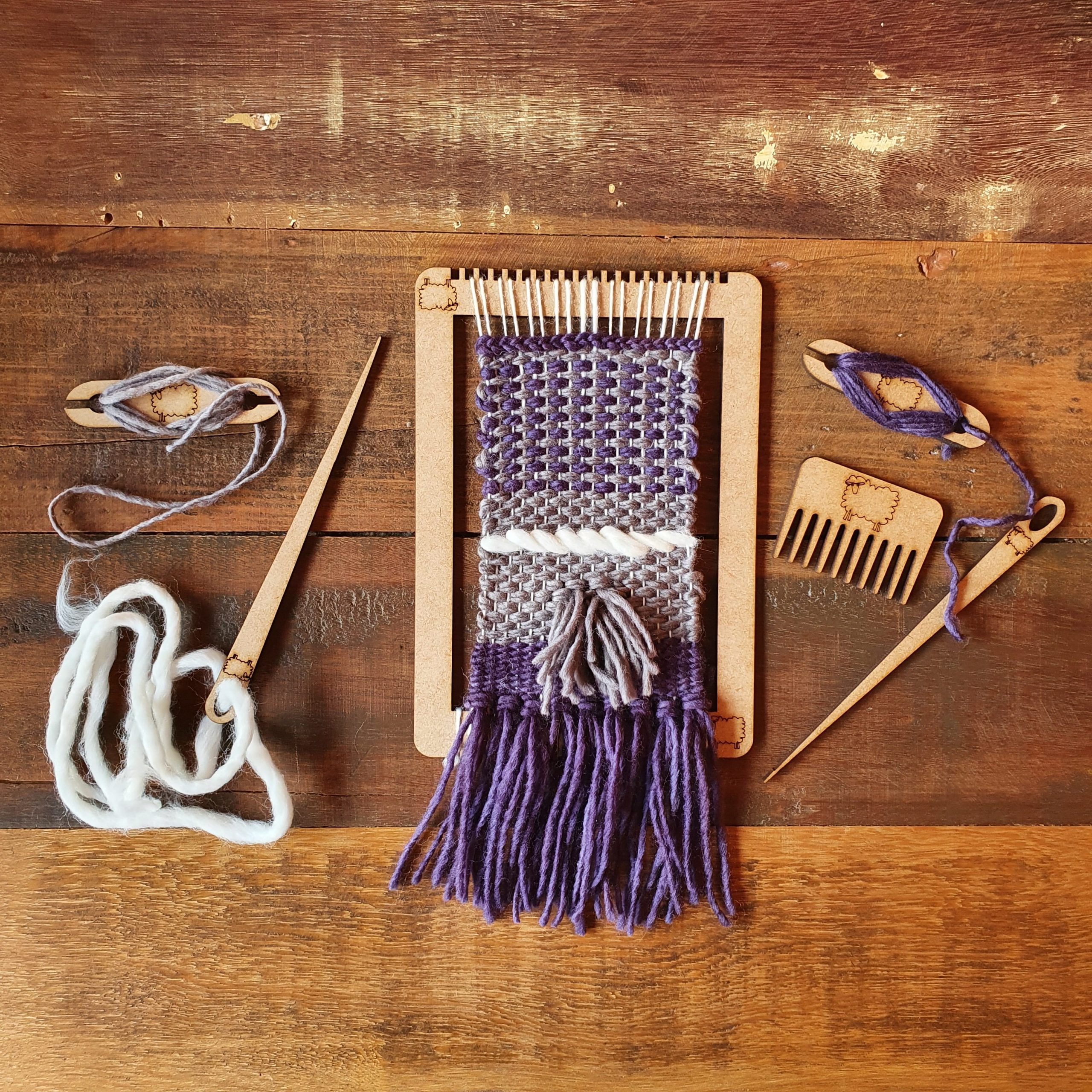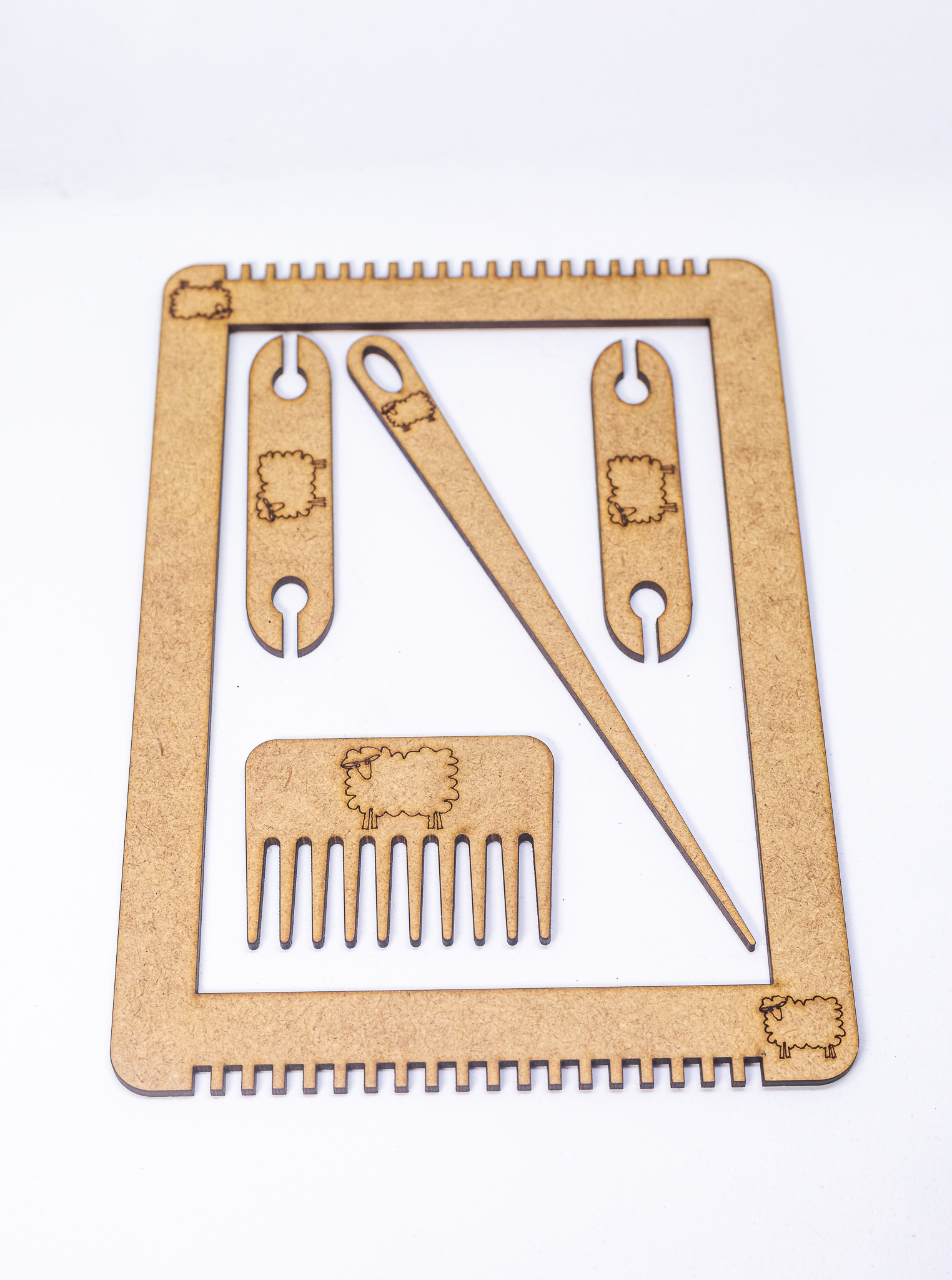 O Mini Tear Mãostiqueiras, desenvolvido em mdf, é uma peça ótima para crianças ou adultos que estão iniciando na técnica do tear.