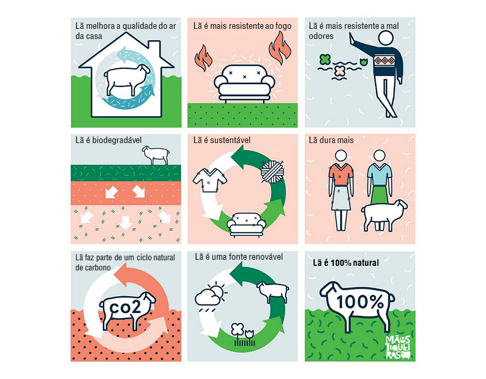 A lã é uma fibra de proteína formada na pele de ovelha, e é, portanto, cem por cento natural, não artificial. Desde a Idade da Pedra, foi apreciada como uma das formas mais eficazes de proteção climática conhecida pelo homem e a ciência ainda não produz uma fibra que corresponda às suas propriedades únicas.